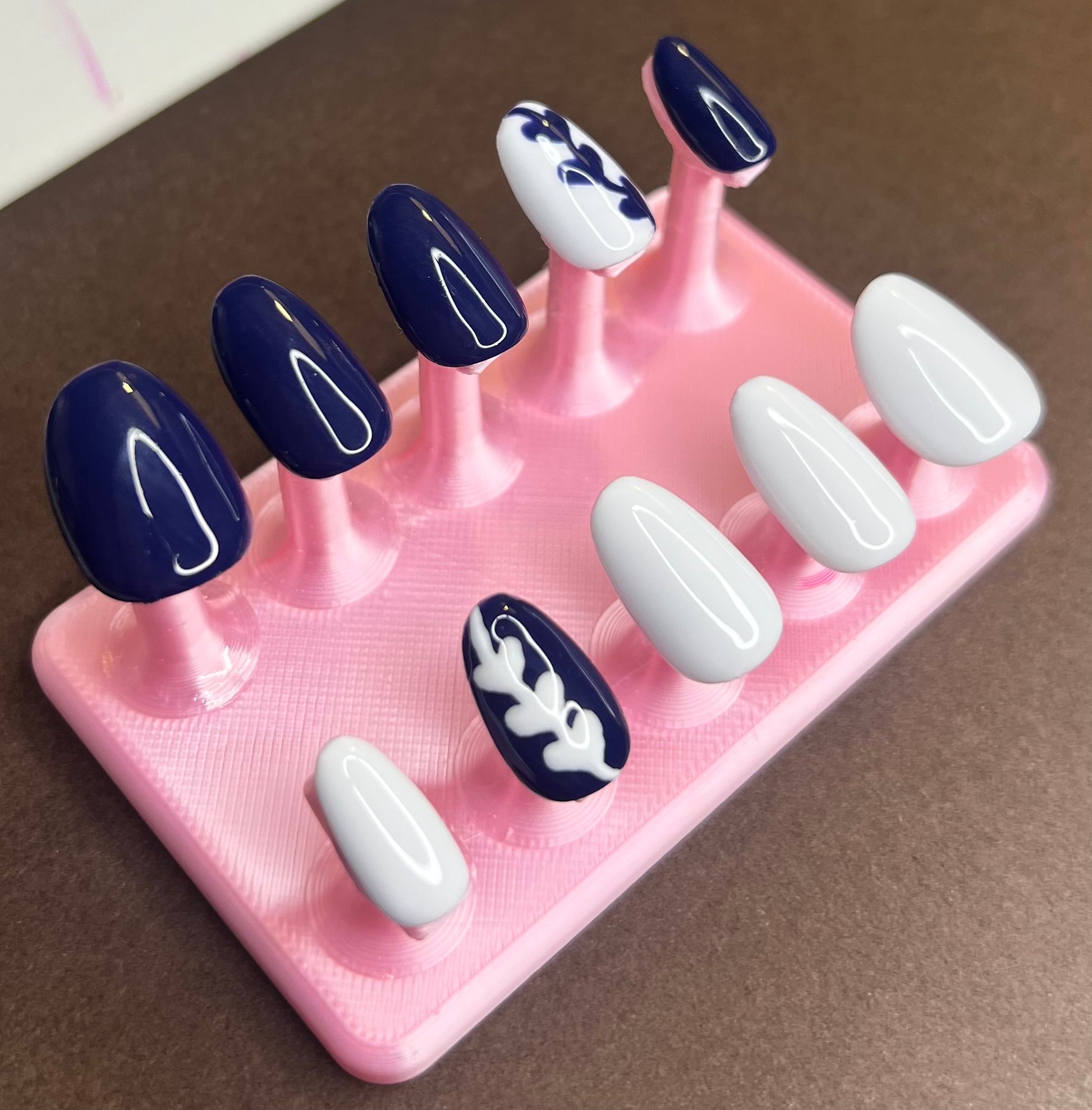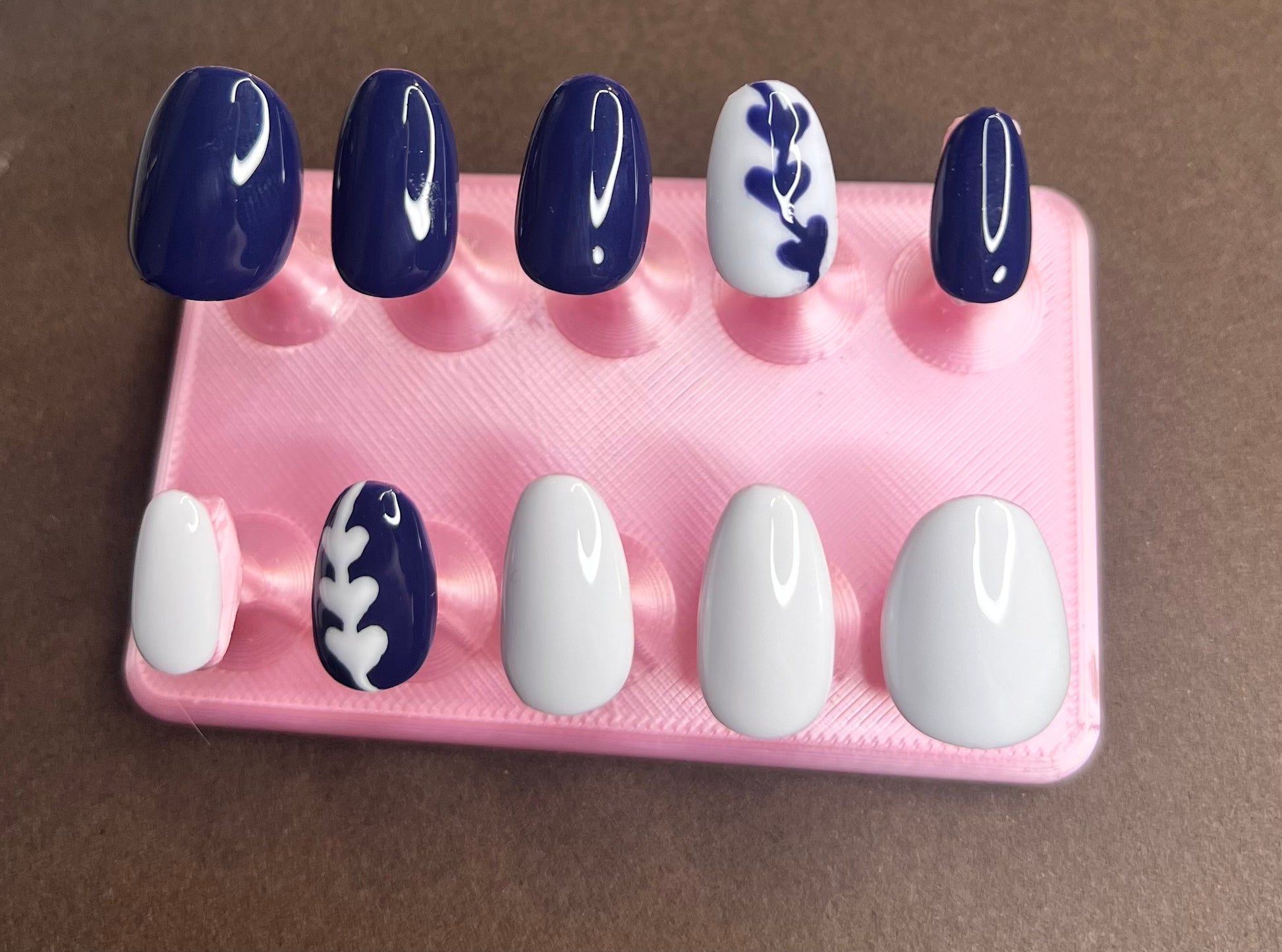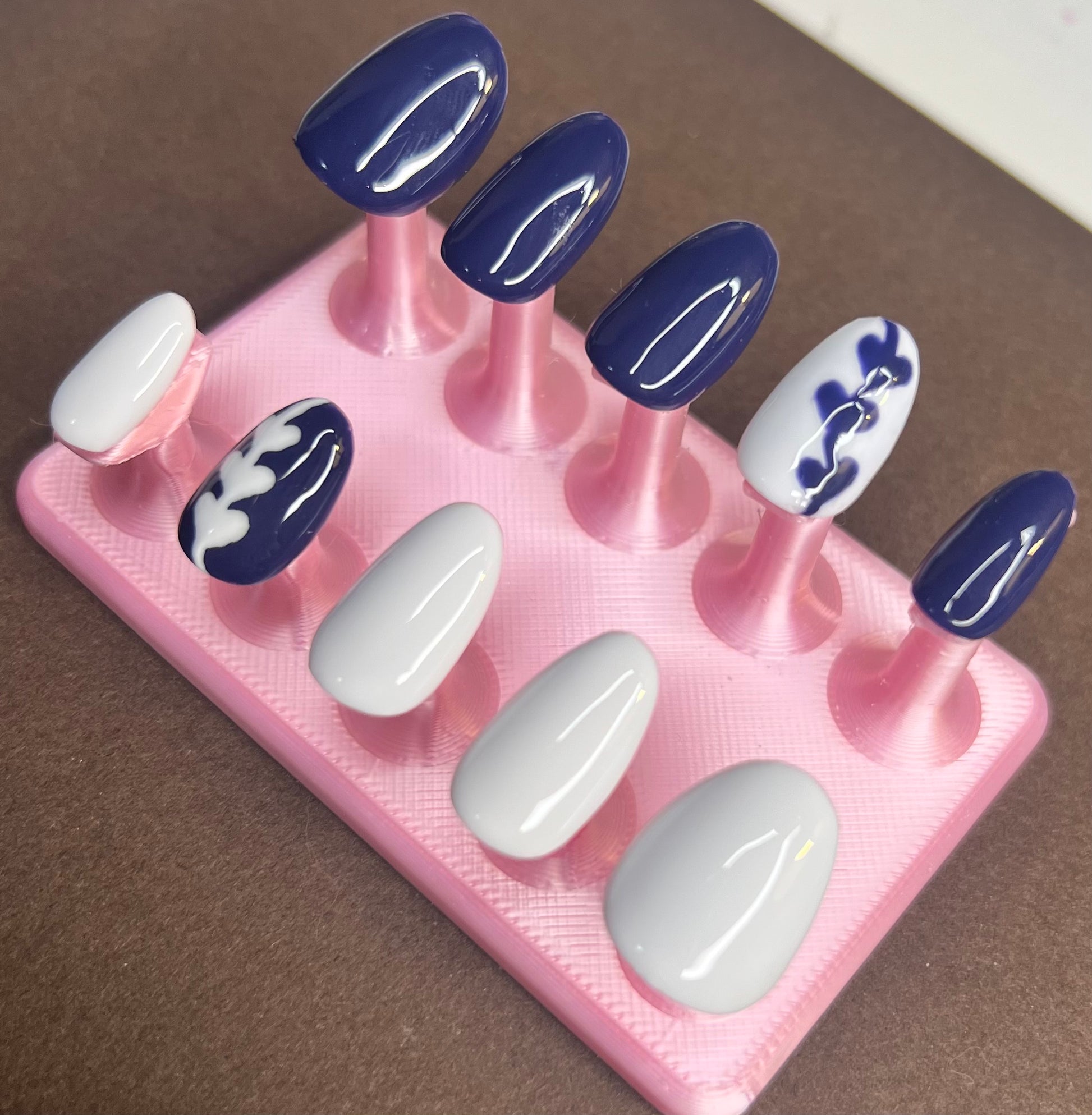 Fall for the contrast with Midnight Crush — a bold and playful press-on set featuring deep navy and crisp white nails, accented with heart details that add just the right touch of sweetness. The glossy finish and soft shape keep the look clean and modern, while the dark colour palette gives it a flirty edge.